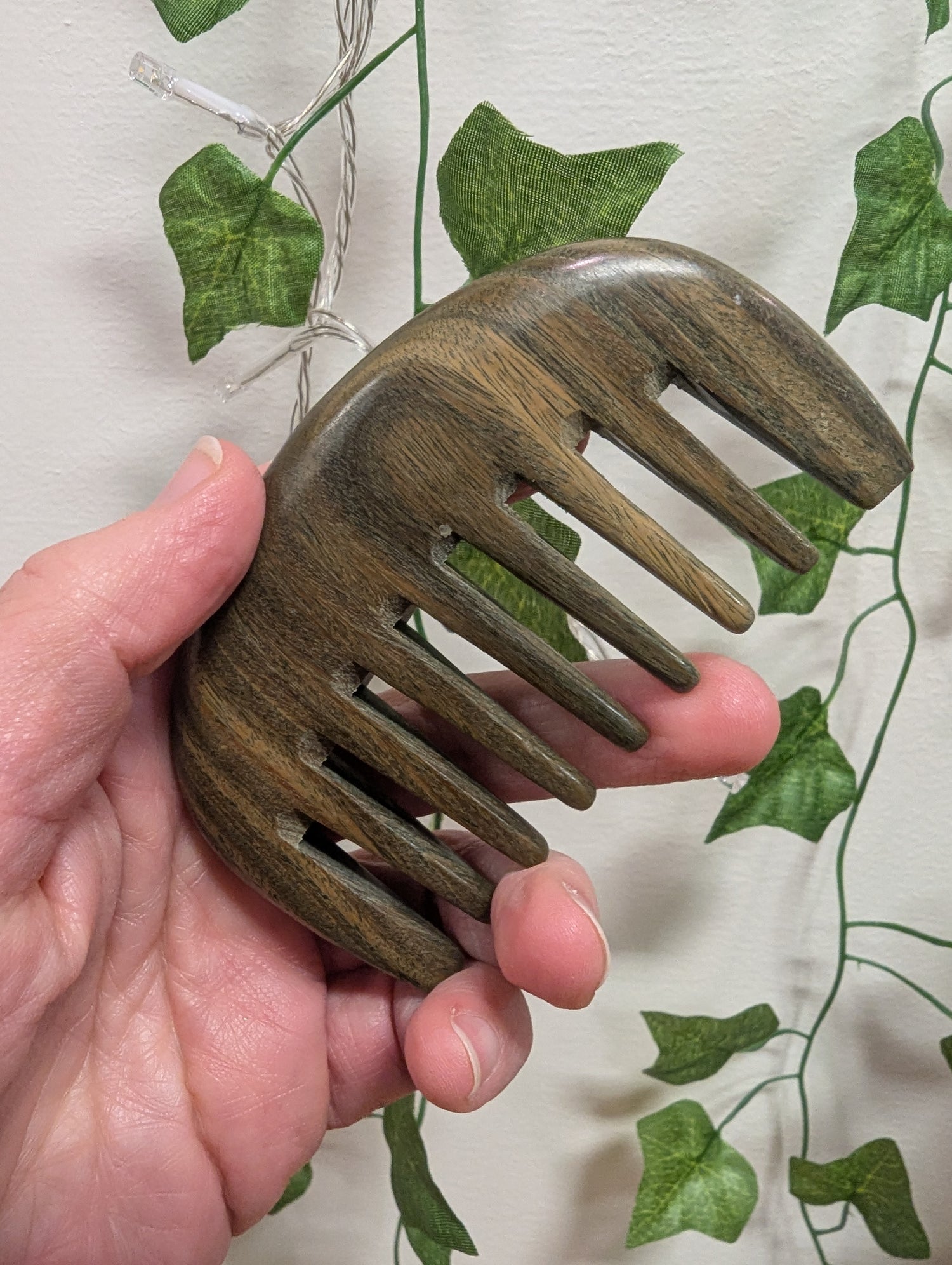 Made of a strong and smooth sandalwood. You can feel the quality when you pick up this comb that can last a lifetime.